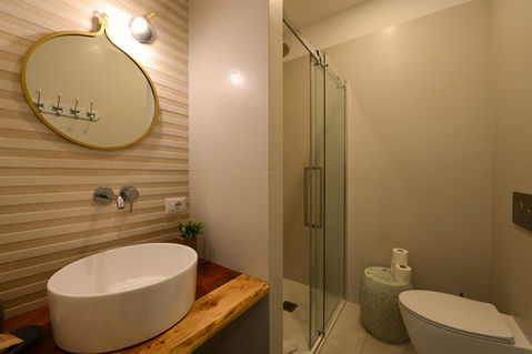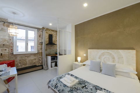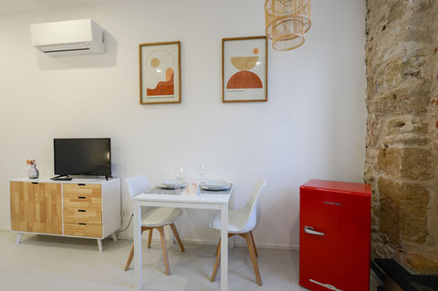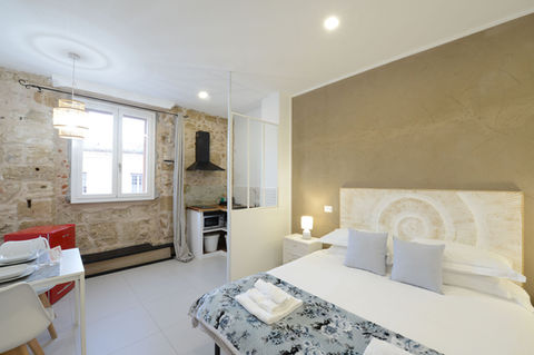 Ogni suo alloggio è dotato di finestre insonorizzate, climatizzato e comprende piccole cucine attrezzate con zona pranzo, una TV a schermo piatto e un bagno privato con bidet, asciugacapelli e set di cortesia. Inoltre a disposizione un forno a microonde, un frigorifero, un piano cottura a induzione e un bollitore. E' presente nel corridoio comune a tutti e tre i monolocali lavasciuga, stendino, kit mare e kit per le pulizie quotidiane.